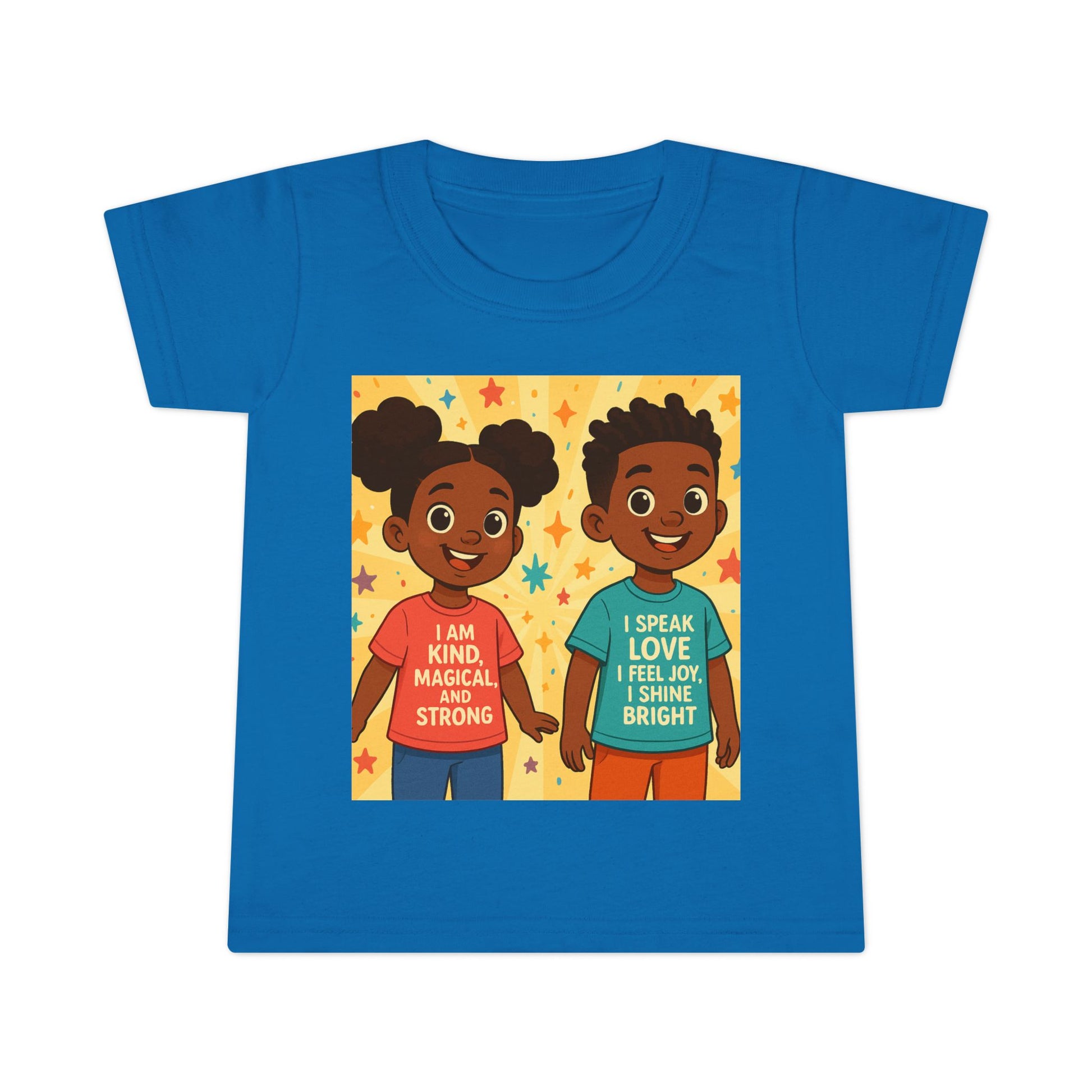 Introducing our delightful Toddler T-shirt, designed to inspire confidence and joy in the littlest ones. This charming shirt features colorful, uplifting messages that radiate positivity, making it perfect for playdates, family gatherings, or just a fun day out. The vibrant design sets a cheerful atmosphere, encouraging children to express themselves freely. Ideal for parents wanting to boost their child's self-esteem, this shirt is a wonderful choice for birthdays, holidays, and celebrations. Your little ones will feel embraced by love and kindness wearing this tee!