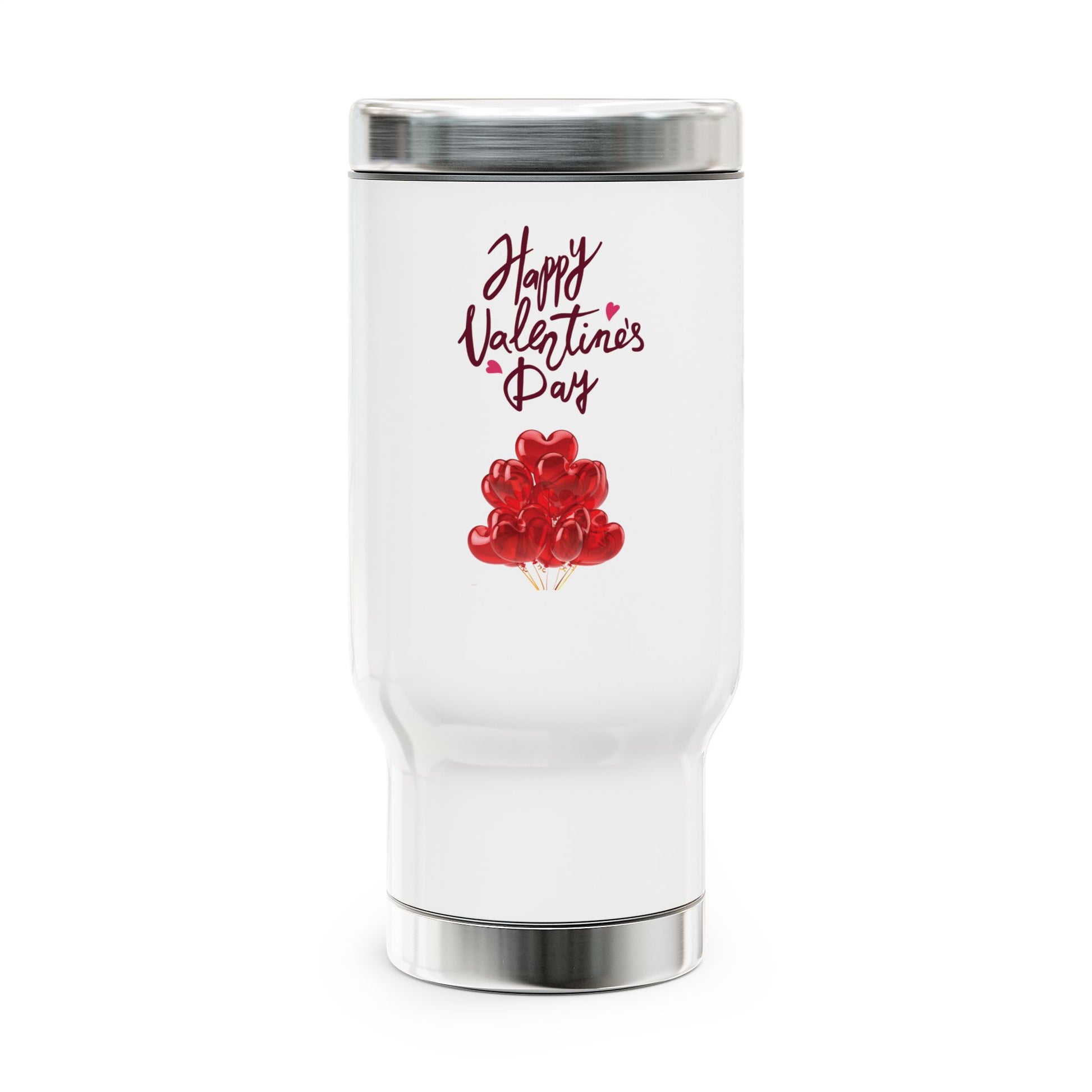 Happy Valentine's Day Heart Balloon Travel Mug-14oz Stainless Steel Tumbler