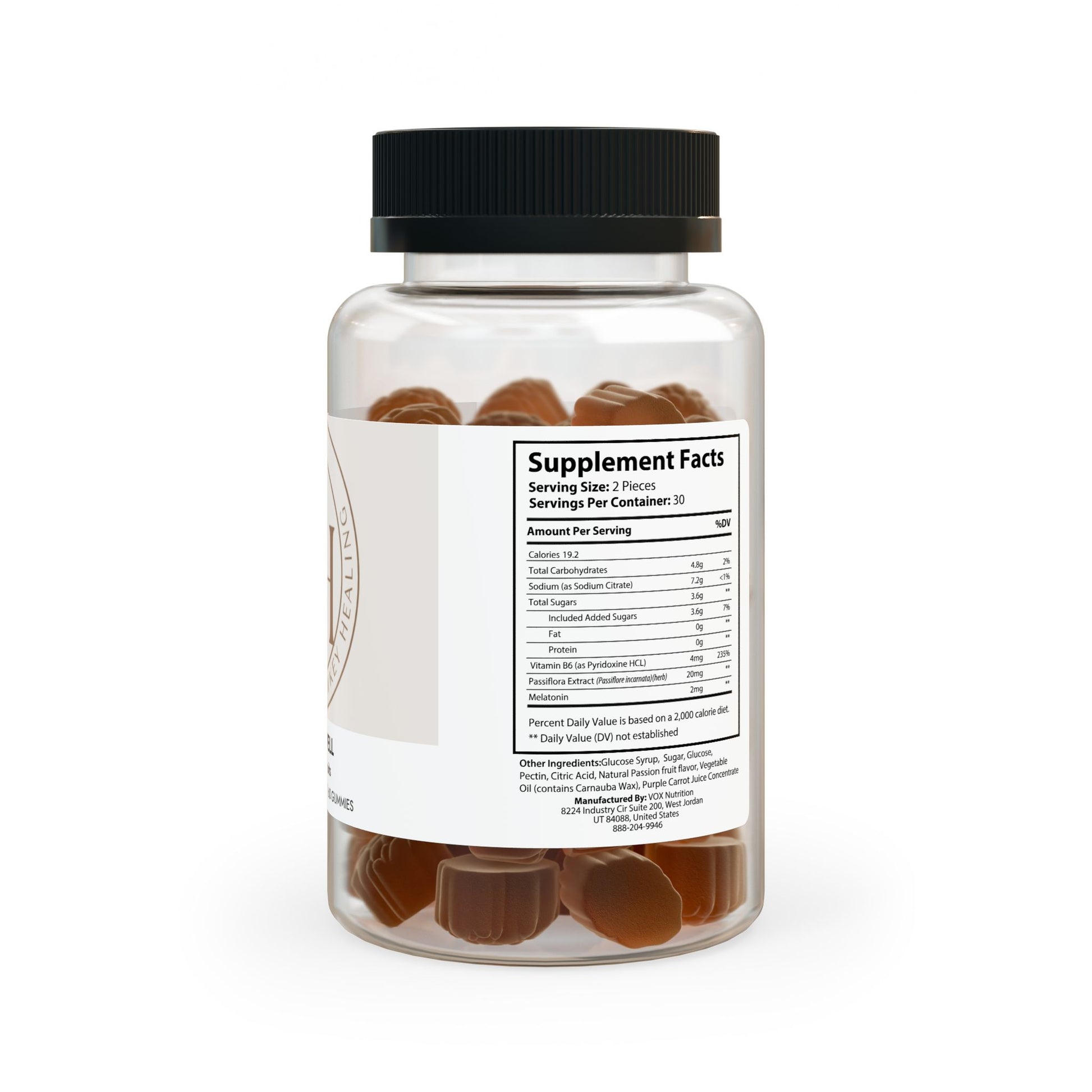 Ingredients: Sodium (as Sodium Citrate), Vitamin B6 (as Pyridoxine HCL), Passiora Extract (Passiore incarnata)(herb), Melatonin. Other Ingredients: Glucose Syrup, Sugar, Glucose, Pectin, Citric Acid, Natural Passion fruit avor, Vegetable Oil (contains Carnauba Wax), Purple Carrot Juice Concentrate