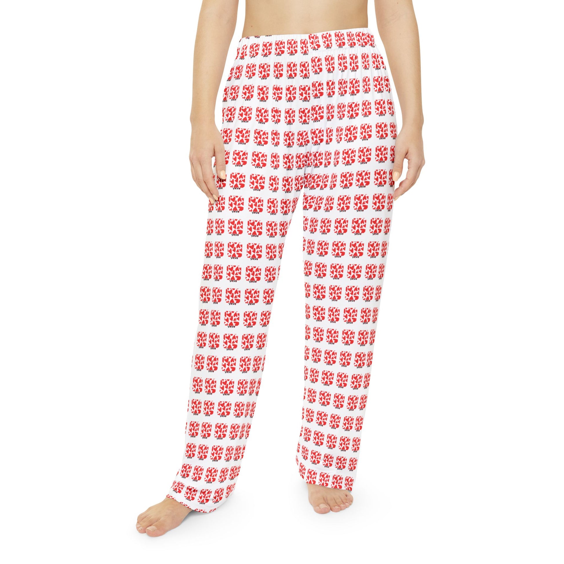 Settle into softness with the Lowkey Love Lounge Women's Valentine Pajama Pants. These wide-leg, high-waist bottoms bring effortless comfort with a playful red geometric pattern that feels festive without being loud. Lightweight, breathable, and perfect for slow mornings, self-care nights, or matching Valentine's Day moments. Cozy enough for lounging, cute enough for content- a quiet flex for the sesaon of love.