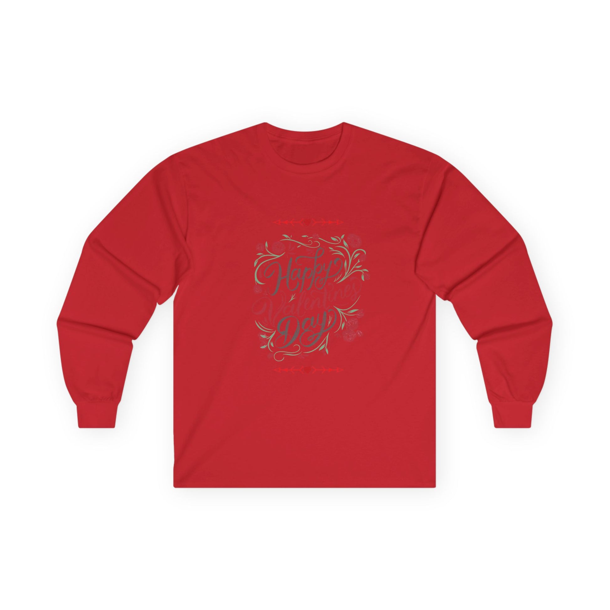Wrap yourself in love with this beautifully designed Valentine's Day Tee. Thr elegant script lettering is framed by soft red roses, leafy accents, subtle heart-tipped arrows, creating a romantic yet timeless look. Printed on a cozy long-sleeve sillouette, this piece blends comfort with charm-perfect for date nights, festive outings, or simply embracing the season of love. It's warm, stylish way to celebrate affection in all its forms.