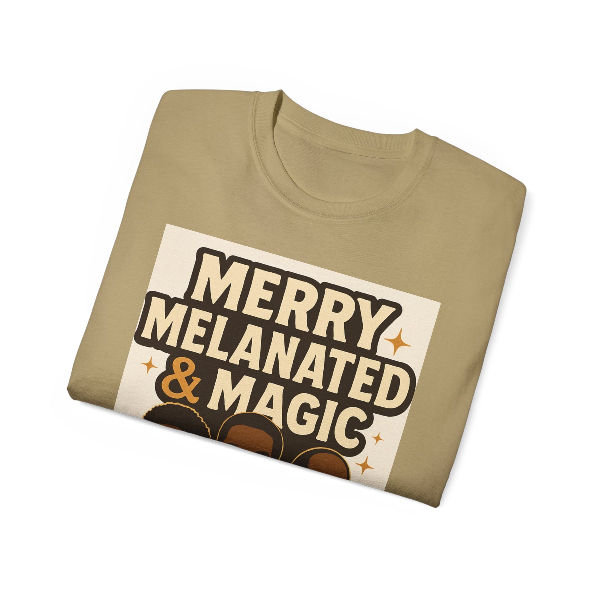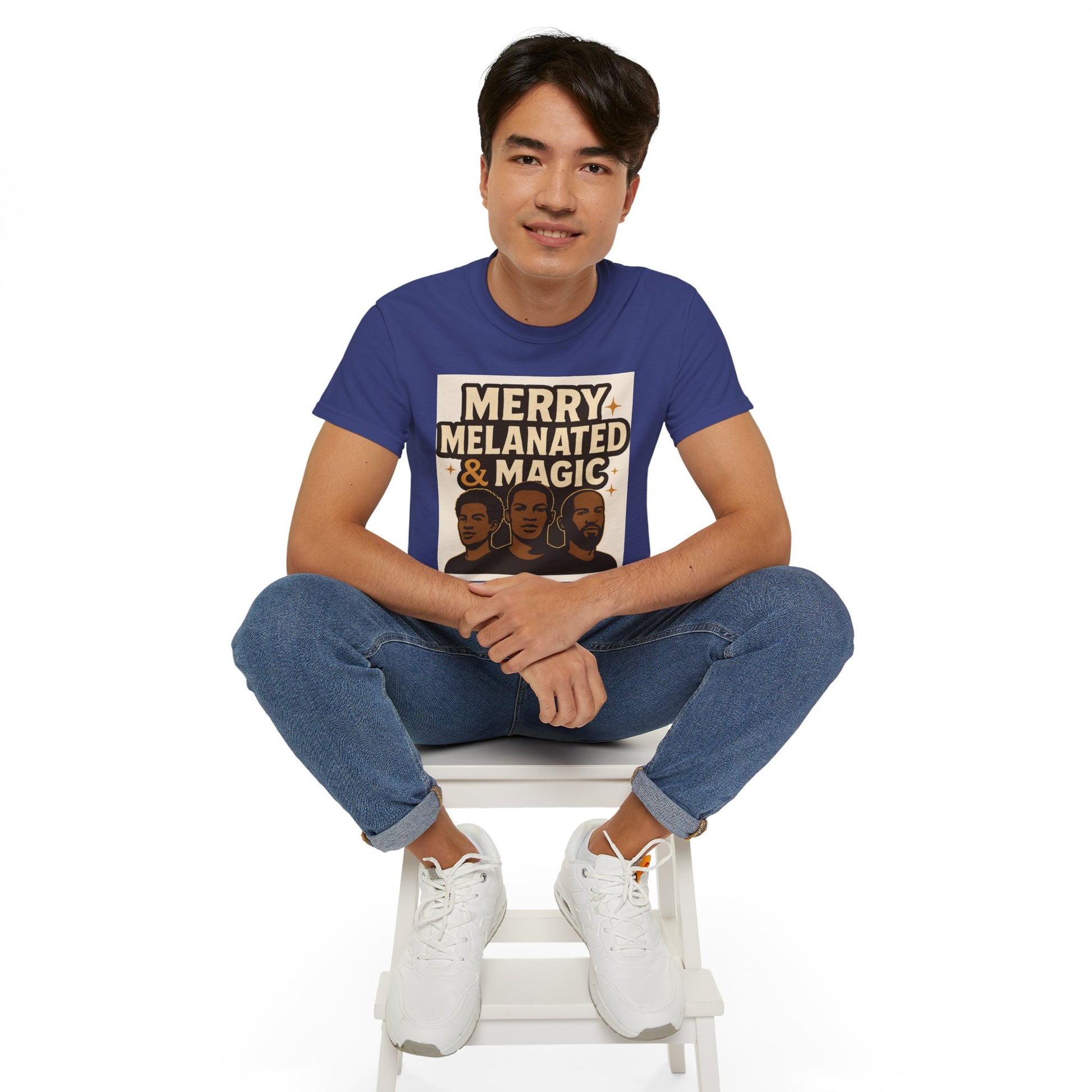 Celebrate the season with pride, warmth, and a little magic. The Merry, Melananted & Magic Men's Tee features a powerful holiday graphic with three melanated kings, created to honor Black men, family, and festive energy.