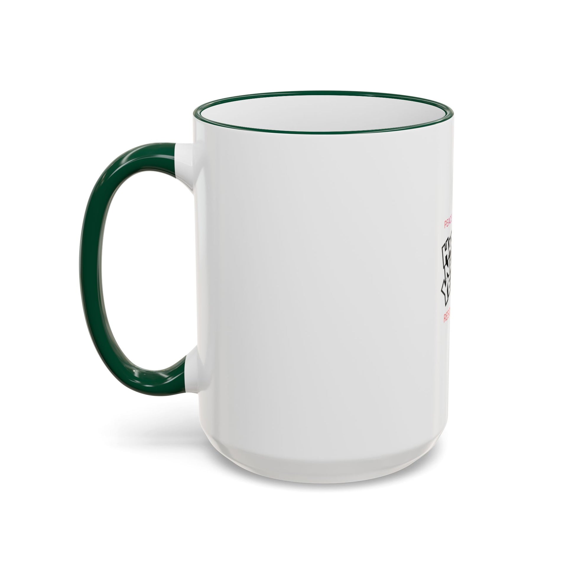 - Available in 11oz and 15oz with colored rim and C-shaped handle