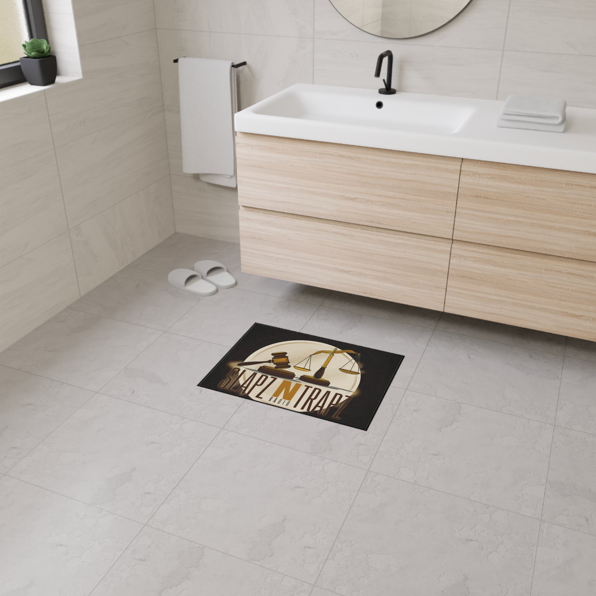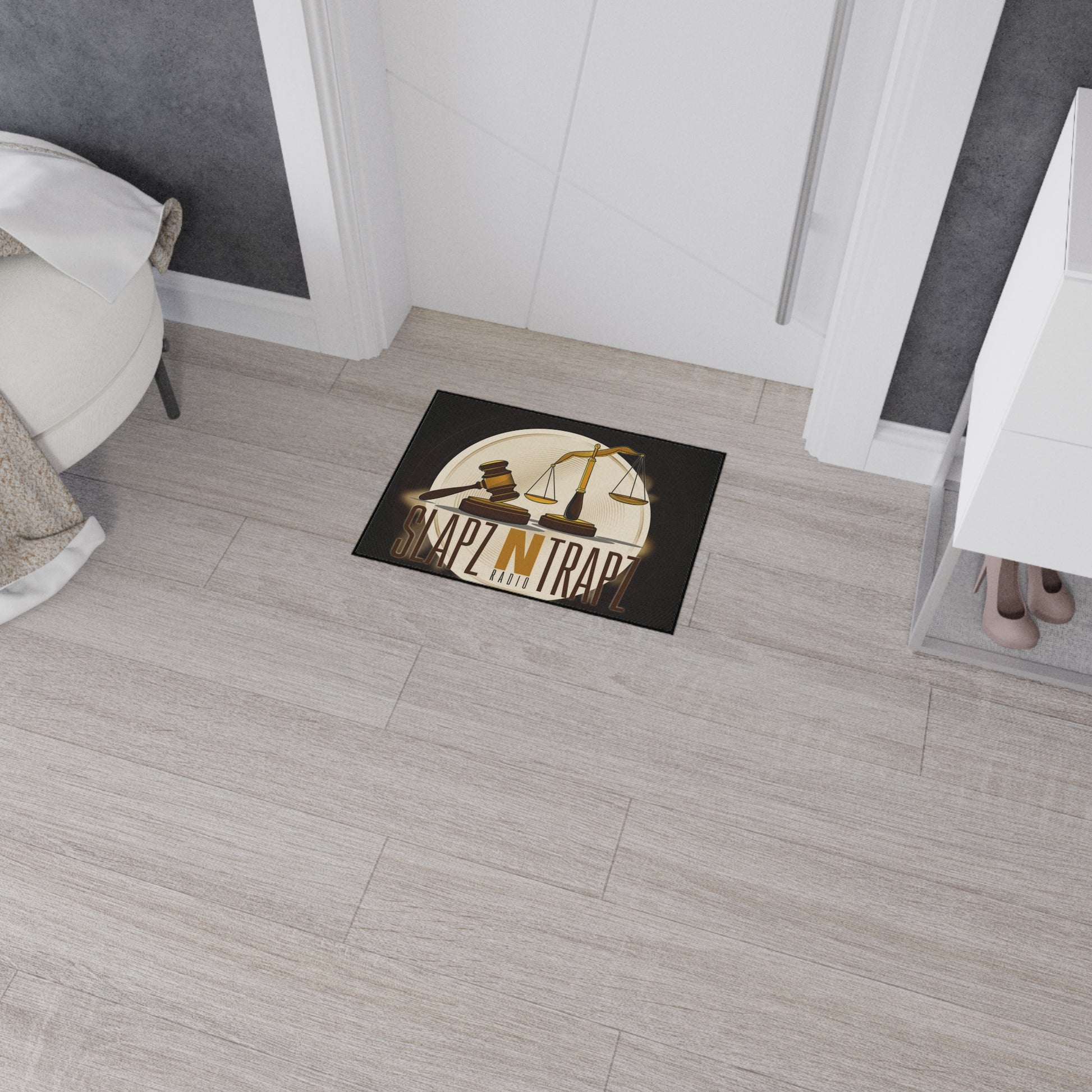 Set the tone the moment they walk in. The Slapz N Trapz Rug blends authorithy with trap culture energy, featuring the iconic gavel and scales of justice design. It's bold, unapologetic, and made for spaces that stand on principle and power. Perfect for studios, offices, entryways, or anywhere you want to flex balance, truth, and grind culture all at once. This rug isn't just decor- it's a stement. Justice. Hustle. Repeat.